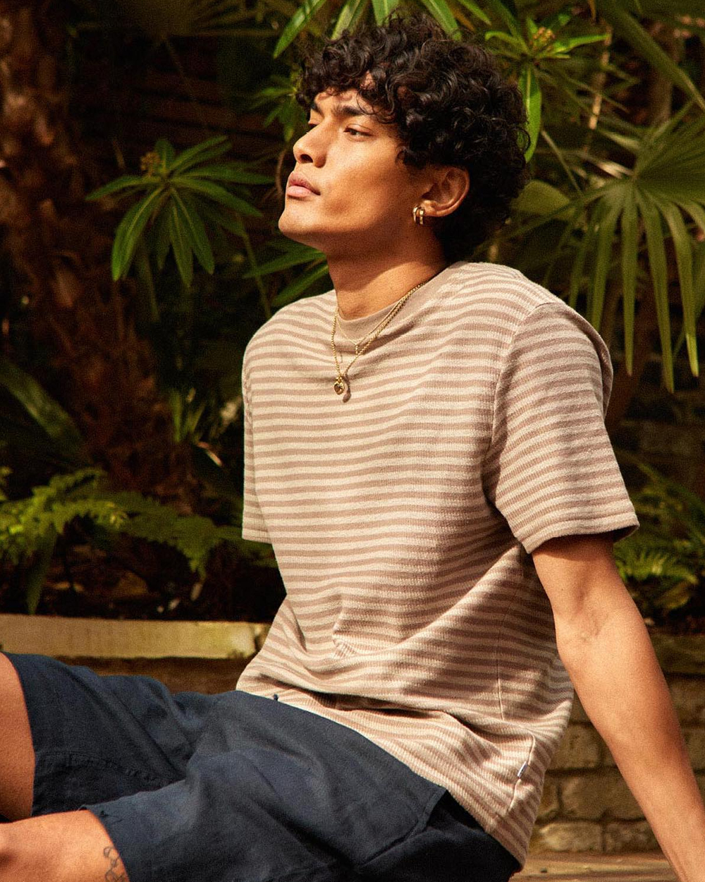 - Wax London Dean T-Shirt Textured Sage/Ecru Stripe