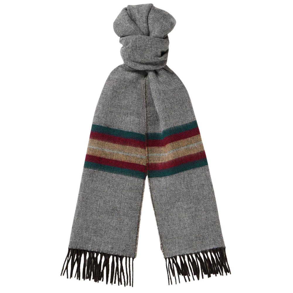 - Johnstons of Elgin Reversible Fringed Striped Cashmere and Wool-Combine Scarf