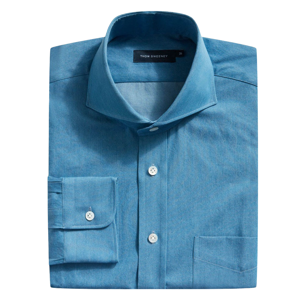 - Thom Sweeney Cotton Chambray Reduce Away Collar Shirt