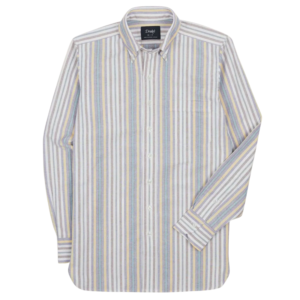 - Drake’s Blue Multi Stripe Cotton Oxford Material Button-Down Shirt
