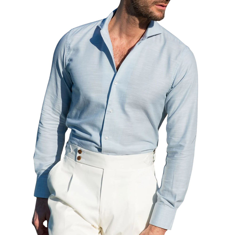 - Pini Parma Delicate Blue Chambray Cotton Shirt