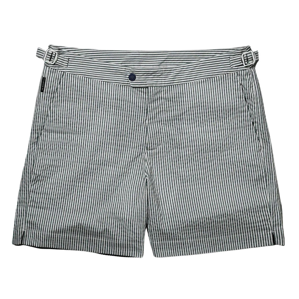 - Tailored Swim Shorts Navy Stripe Seersucker