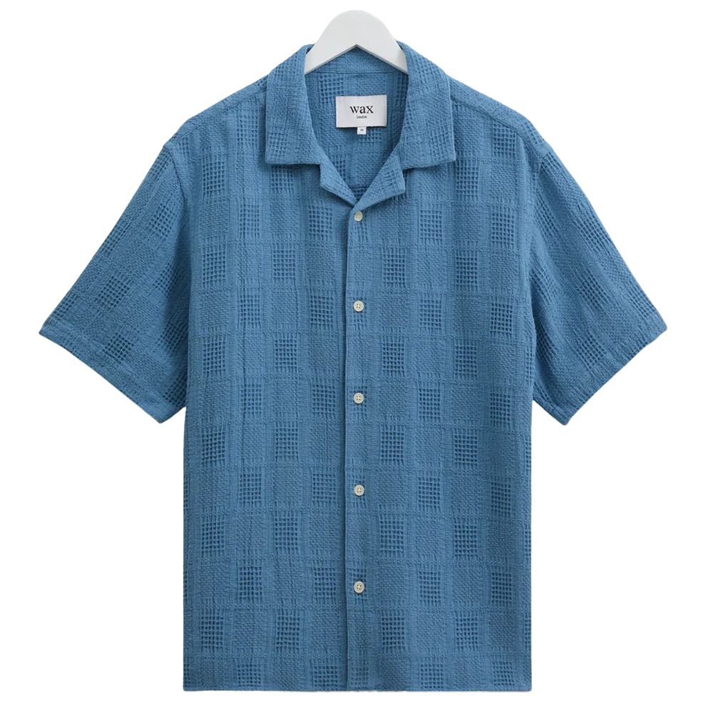 - Wax London Didcot Shirt Blue Patchwork Waffle