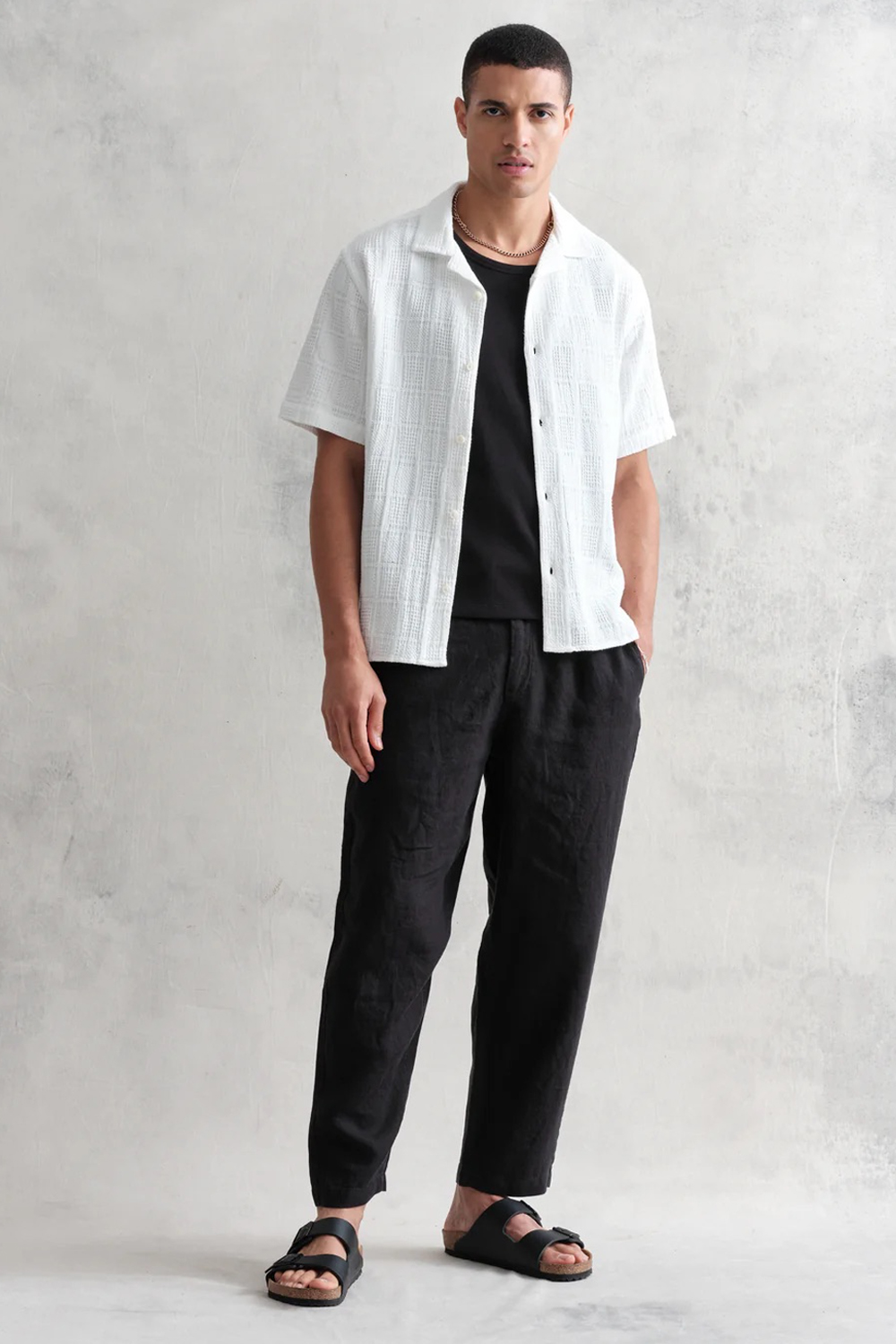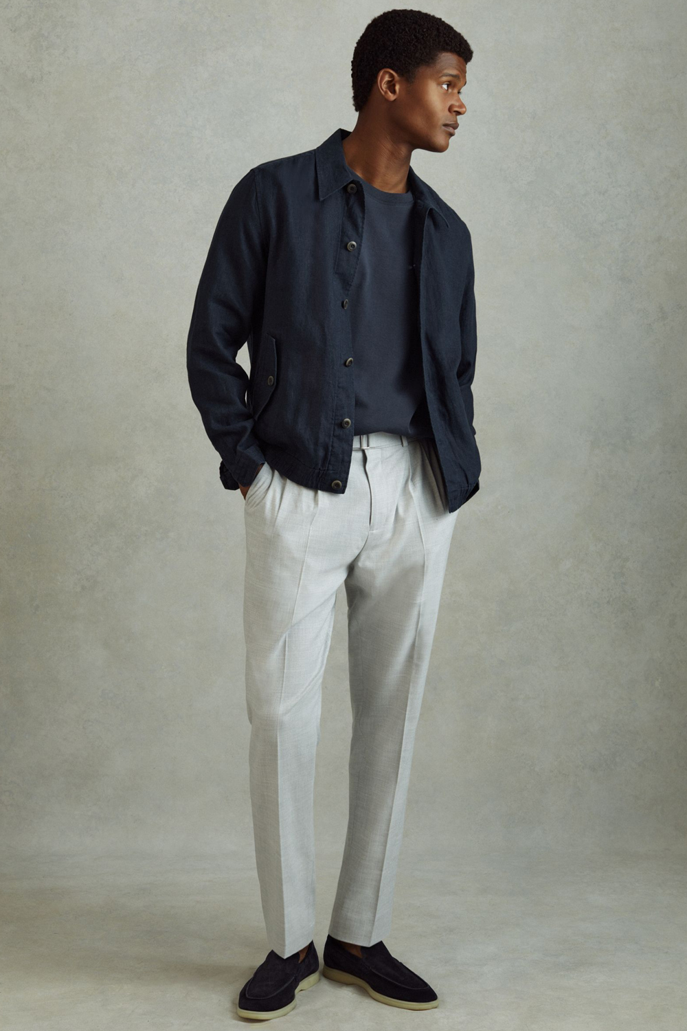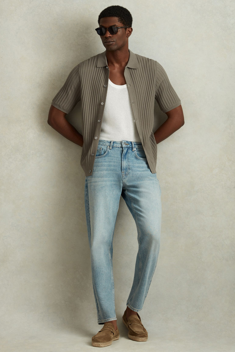 Begin with a plain T-shirt or vest (white is all the time a secure wager) and, relying on the temperature, add a camp collar shirt, a long-sleeve linen shirt or an overshirt excessive. Go away it unbuttoned for greatest outcomes.