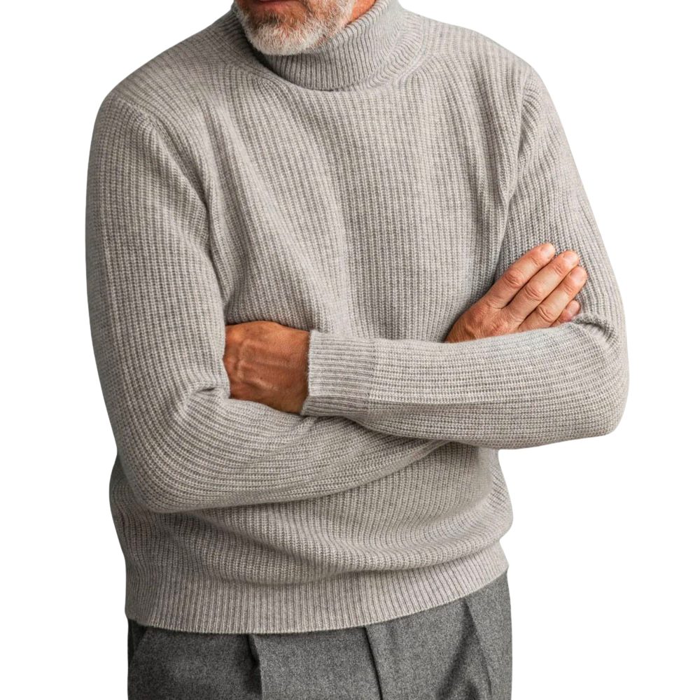 - Pini Parma Grey Ribbed Turtleneck in Cashmere