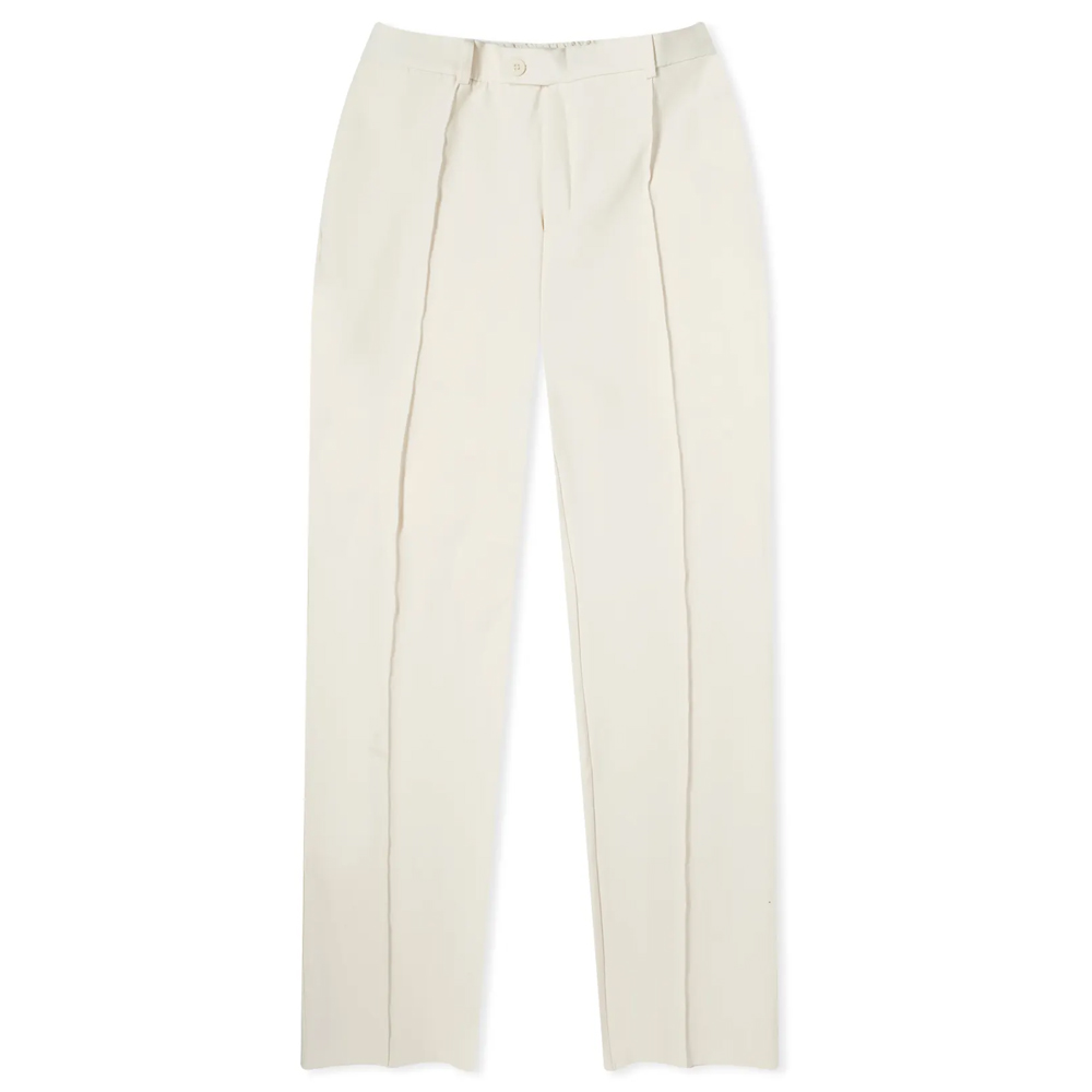 Alongside staple tees and hoodies, the model’s collections additionally dabble in one thing slightly extra tailor-made. You’ll discover flowing pleated trousers and conventional Bermuda shorts, in addition to midcentury-style cardigans and knitted biking tops.